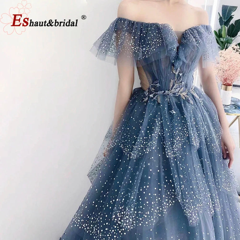 Elegant Evening Dress for Women 2025 Luxury Off the Shoulder Beads Tiered Ruffles Formal Prom Wedding Party Gowns Customized